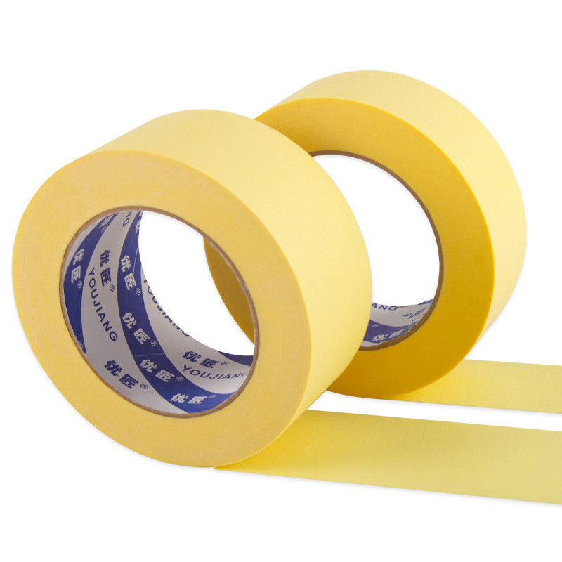 1:YOUJIANG yellow masking tape Automotive Refinish Masking Tape is a yellow crepe paper masking tape designed specifically for excelling at all general masking applications in the collision repair industry (cars, грузовики, другие специальные транспортные средства) для общего маскирования краски.